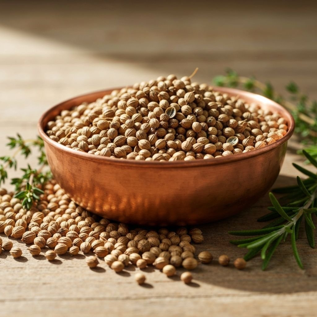 Whole coriander seeds sourced from the Malabar Coast. Citrusy, nutty aroma perfect for tempering and spice blends.