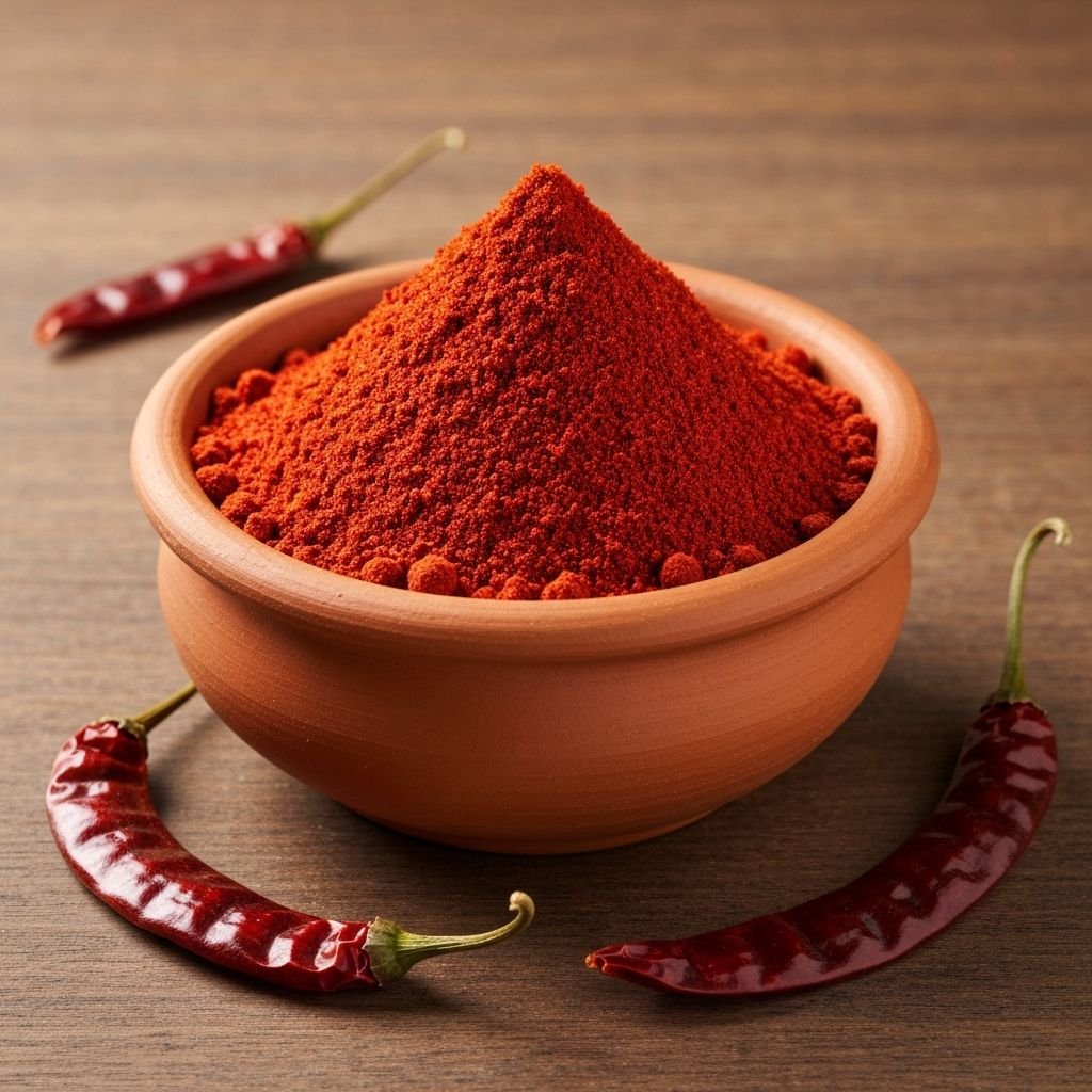 Premium sun-dried red chilies from the valleys of Kashmir. Deep crimson color with mild heat and exceptional flavor.